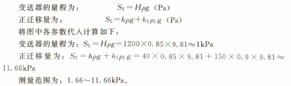 从上式中可见:除h是变量外,其他H、ρ0、ρ1、ρ2都是常量,H(ρ1-ρ0)是一个与被测界面(液面)无关的常量,也就是作用在差压变送器上的固定压差,是应当用迁移来平衡的最,即迁移量为