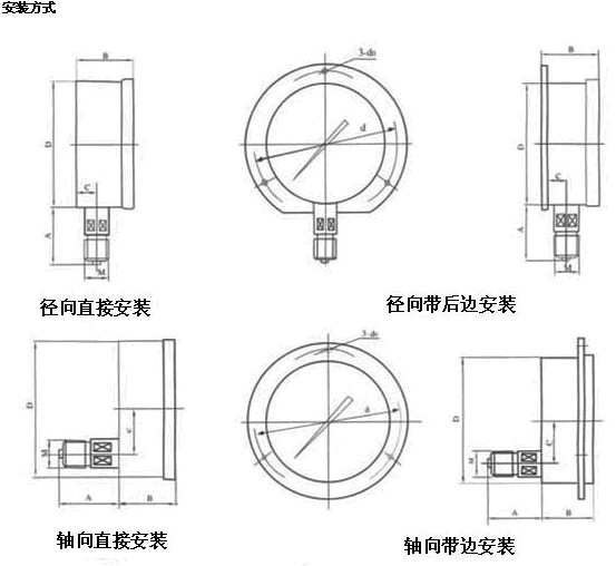 2、压力表必须垂直安装。安装拆卸时不允许直接扳拔表壳。
