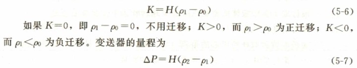 从上式中可见:除h是变量外,其他H、ρ0、ρ1、ρ2都是常量,H(ρ1-ρ0)是一个与被测界面(液面)无关的常量,也就是作用在差压变送器上的固定压差,是应当用迁移来平衡的最,即迁移量为