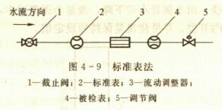 该方法是用高准确度的标准流量计与被校验流量仪表串联,流体依次流过二者,比较二者的示值,确定被检表的误差,达到检测的目的。该使用方法的装置结构相对简单,其典型应用如图4-9所示。